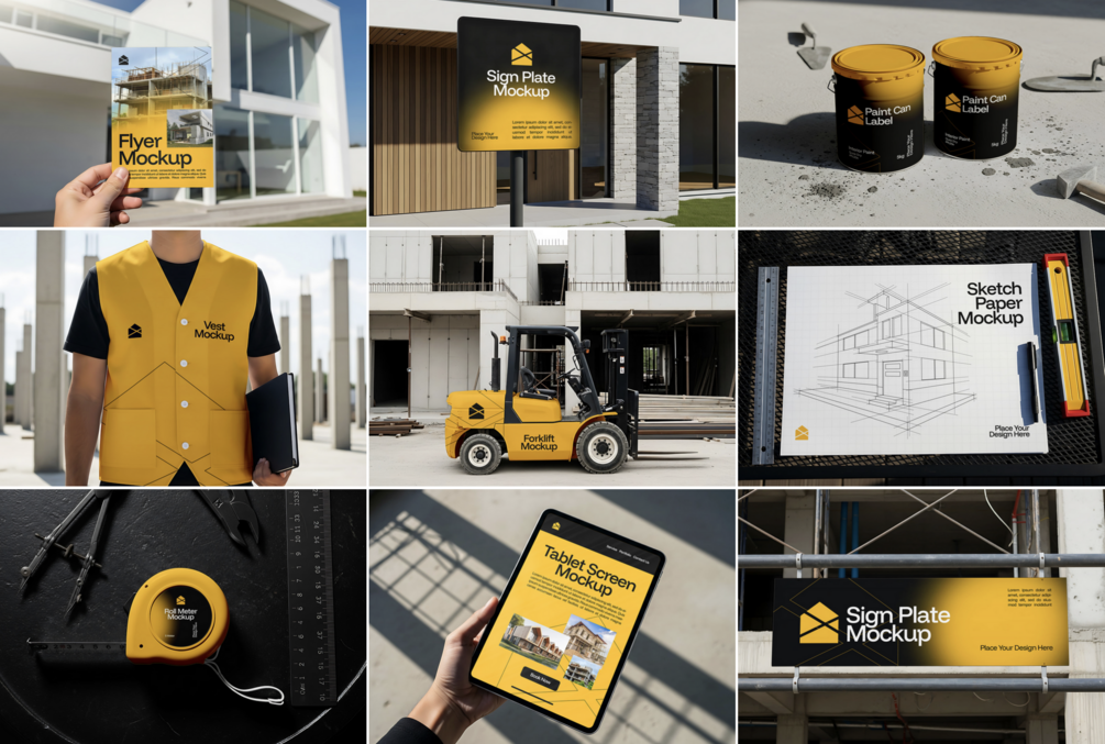 Build a strong visual identity for your construction or architecture firm with this professional mockup set. Featuring realistic PSD scenes from safety helmets, vests, signage, forklifts, to container branding all styled in clean industrial tones for high-impact presentations.