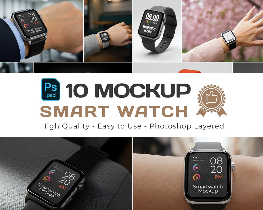 10 Smartwatch Mockups – PSD Wrist UI Display Kit for Fitness, App, and Product Designers